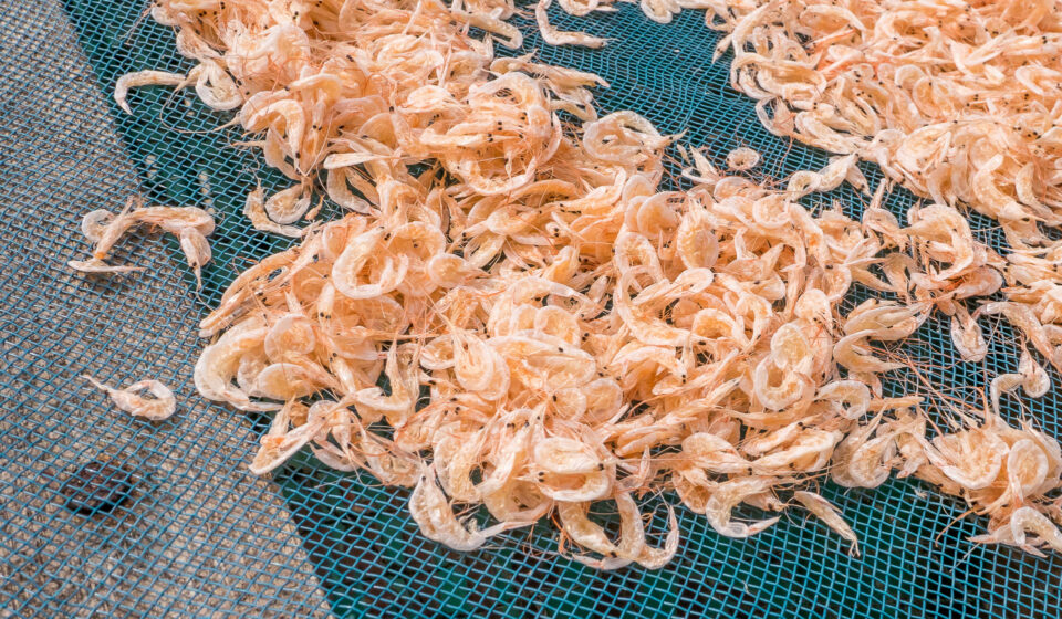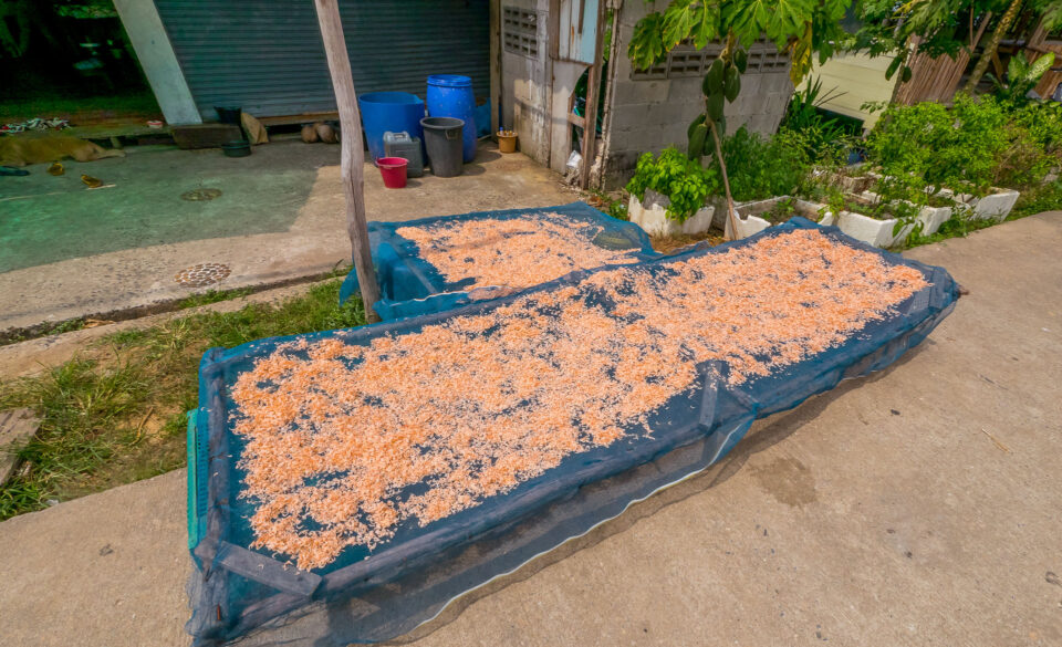 Маленькие креветки. Издалека я подумал что это какие-то лепестки цветов. Вот по шляпке гвоздя на фотографии сразу становится ясным насколько это маленькие креветки.