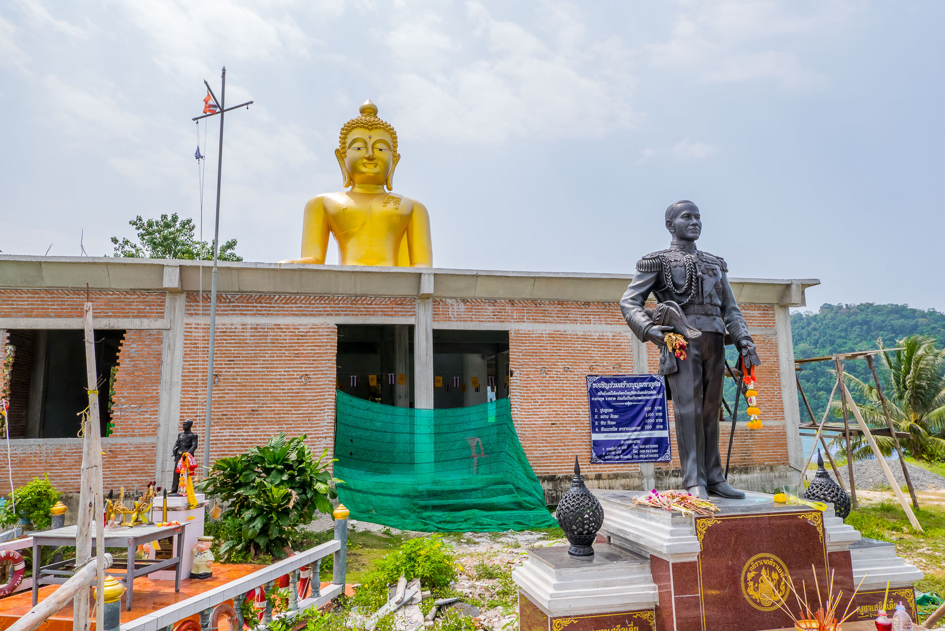 Статуя Будды, строящийся храм и памятник какому-то военачальнику.