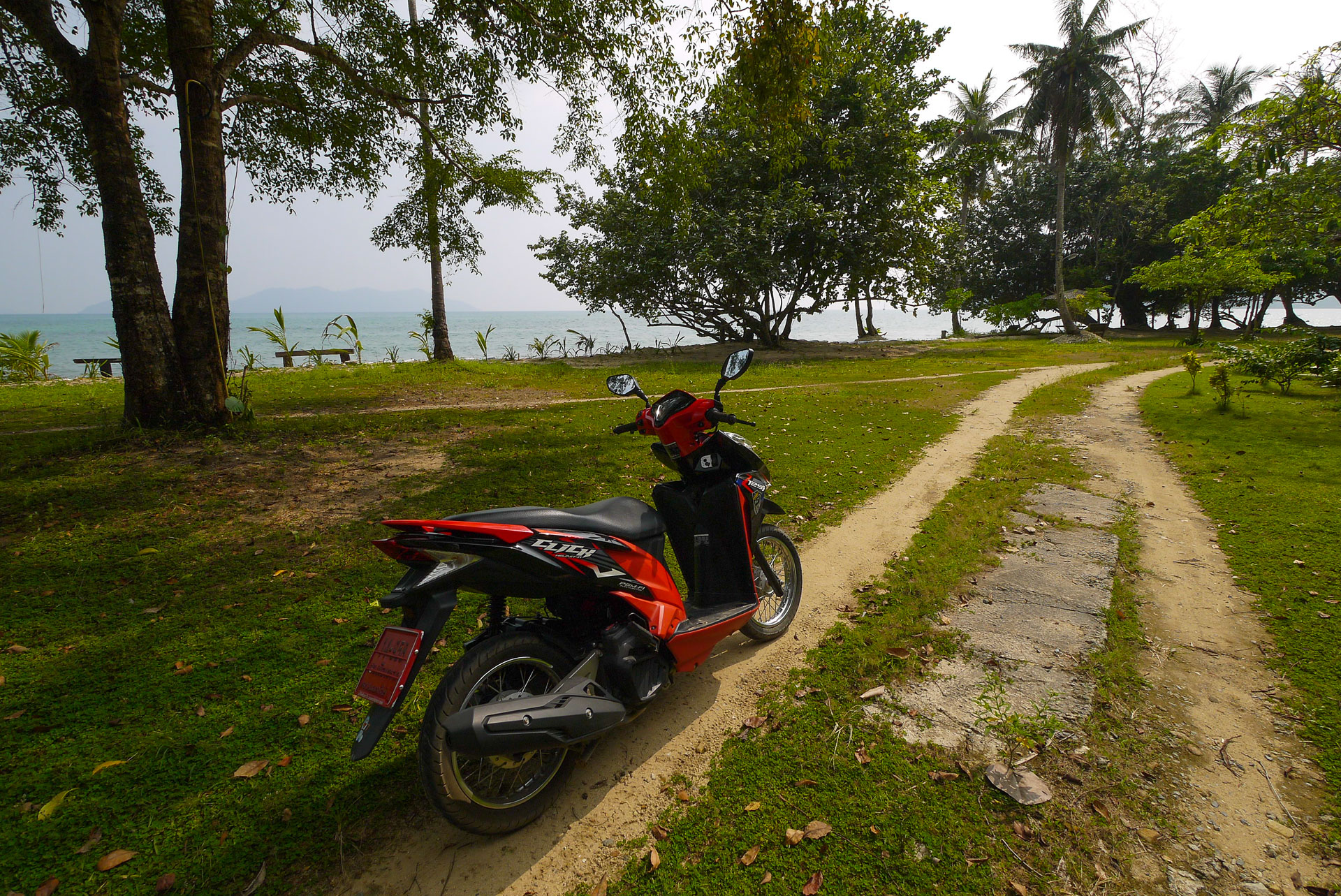 Ко-Чанг довольно большой остров. Как быть если хочется осмотреть остров, съездить на соседний пляж или водопад? Есть вариант договорится с такси или арендовать мотобайк. Такси удобно если вы едите большой компанией от 4х и более, если меньше то это не бюджетно. Лучше и дешевле арендовать мотобайк ( все называют по разному кто-то скутер, кто-то мопед или просто байк). Стандартный мотобайк это небольшой мотоцикл с автоматической коробкой передач и объемом двигателя 125 куб. см.