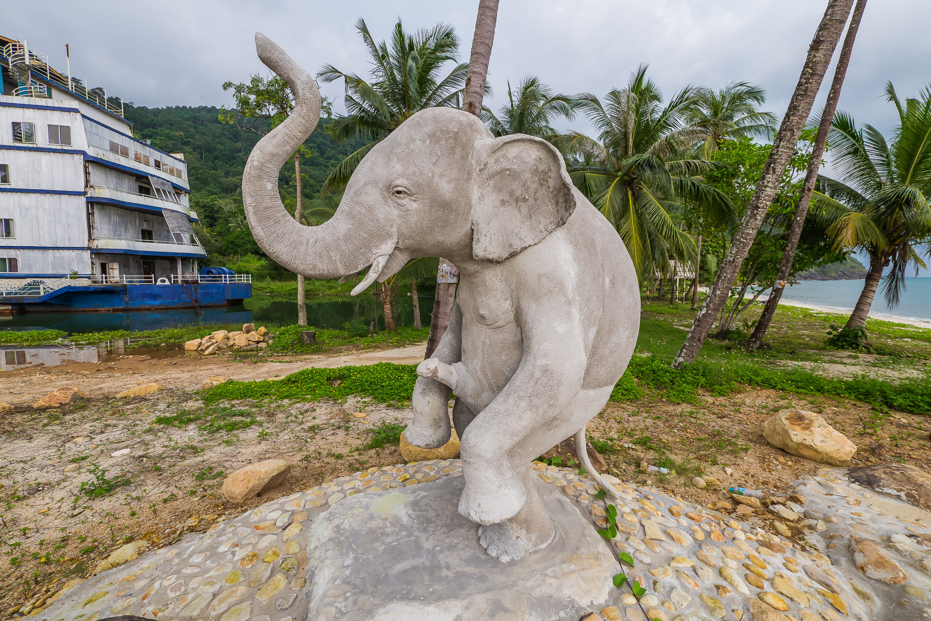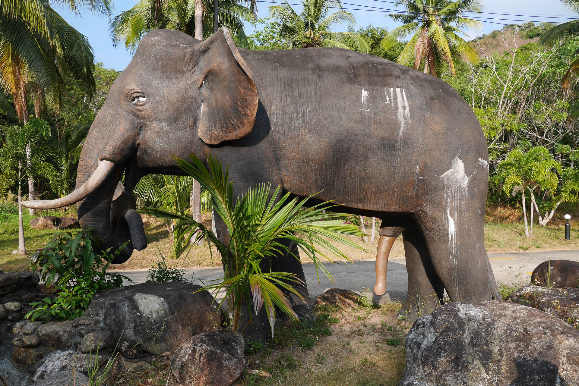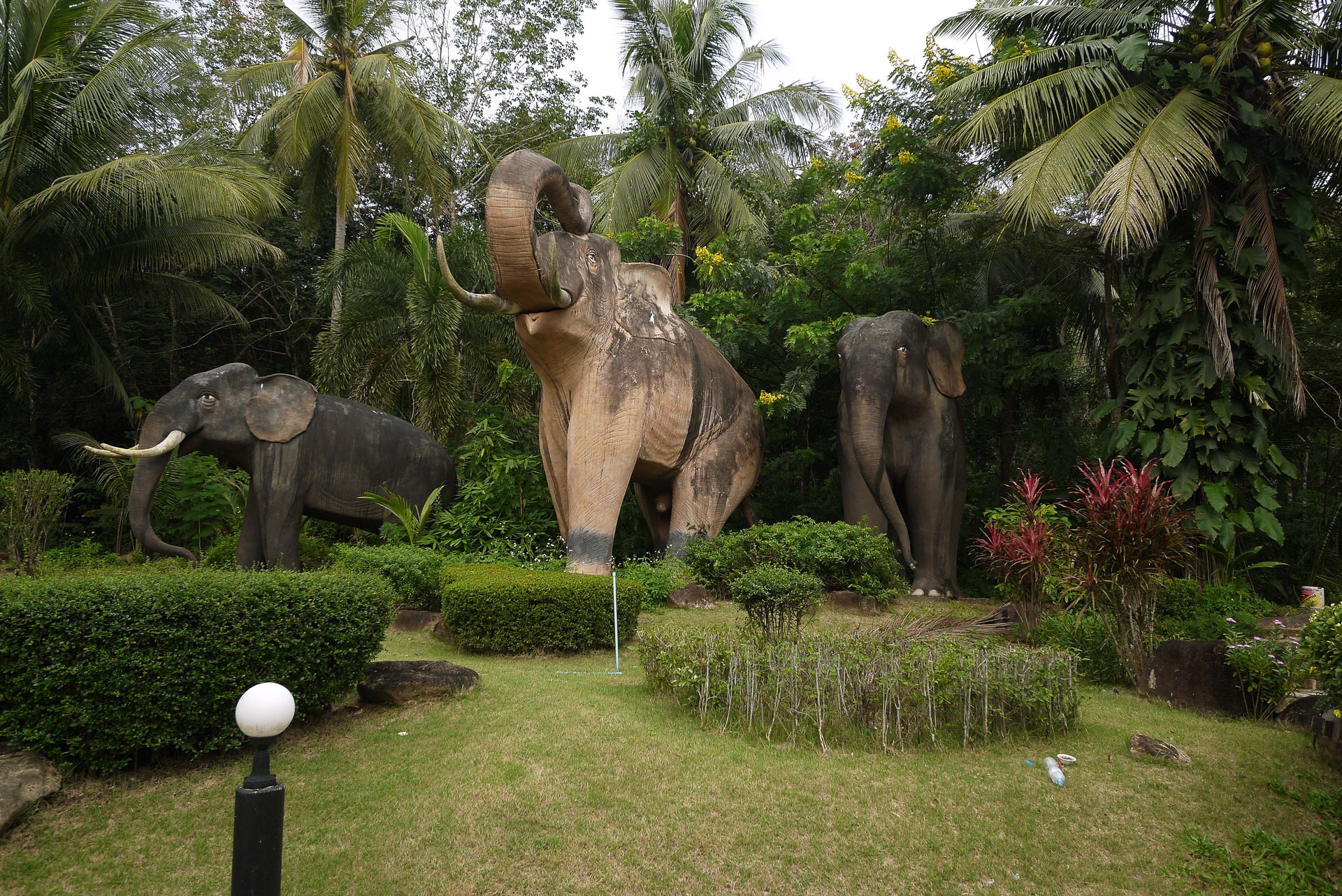 При подъезде к пляжу вы непременно увидите величественные скульптуры слонов.