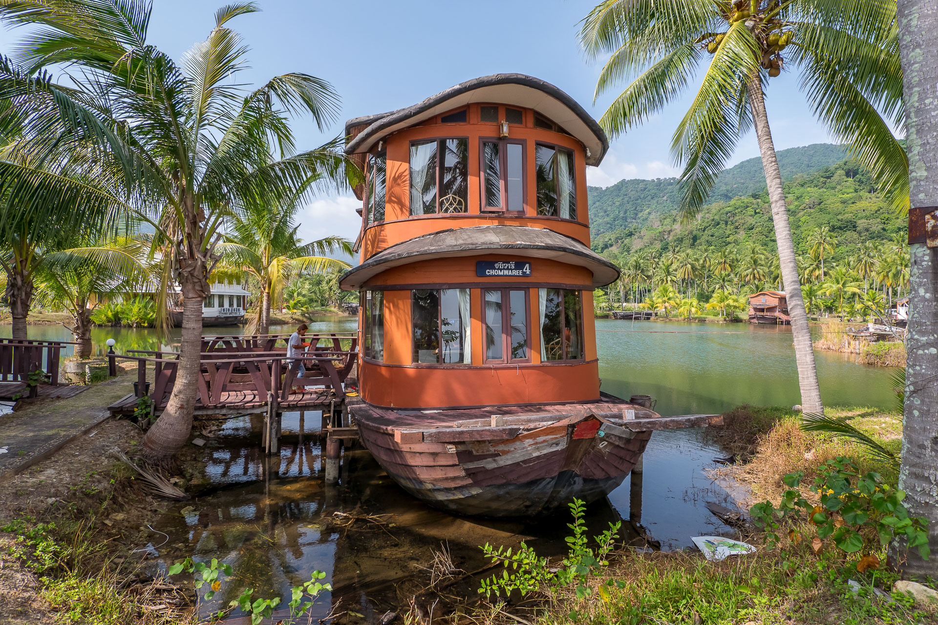 Но еще интересней это отель Koh Chang Boat Chalet, комнаты которого это большие лодки стоящие в озере.