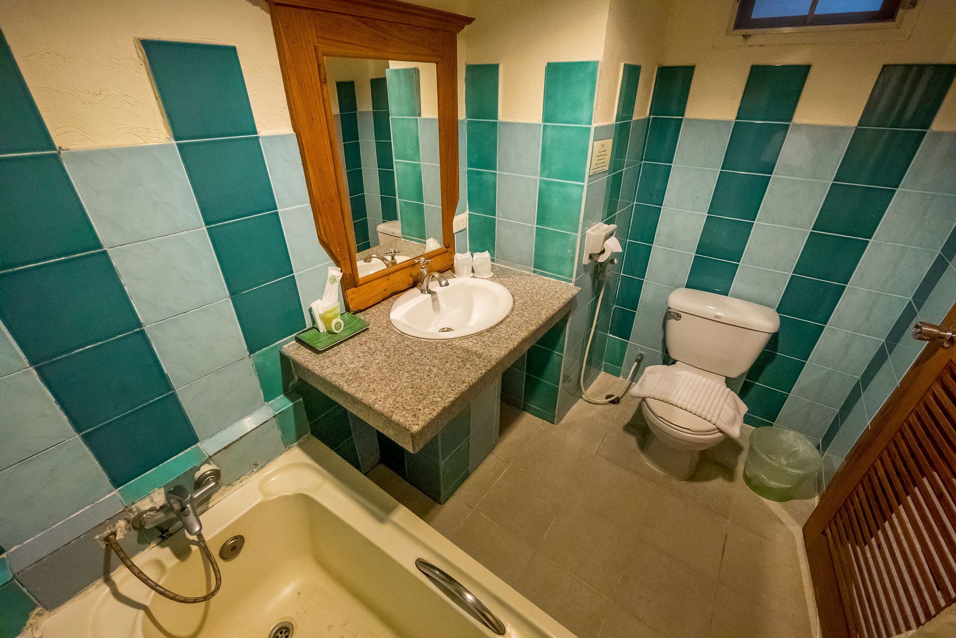 Ванная с ванной. Есть набор с шампунем и мылом.