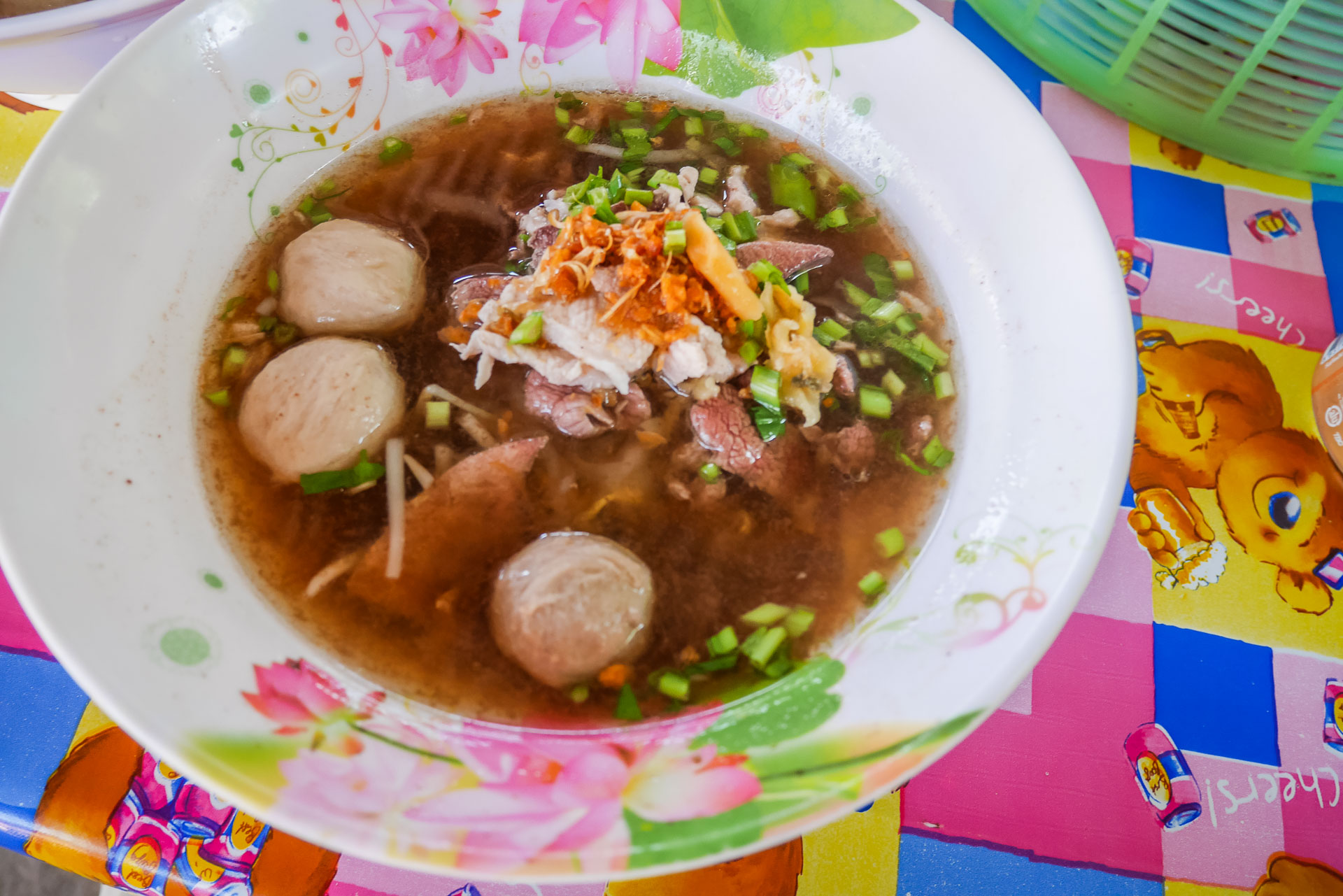 Здесь также можно недорого поесть. Вот лапша на говяжьем бульоне за 50 бат: