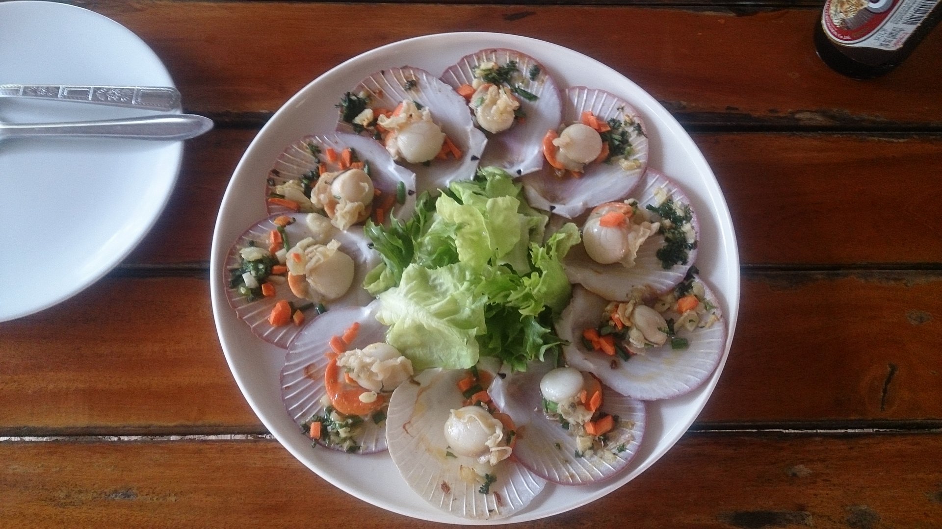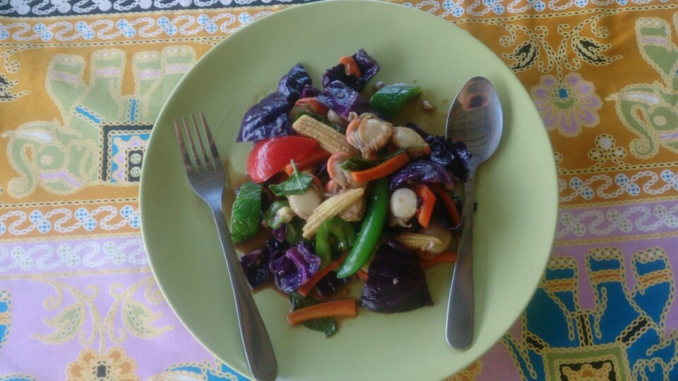 Гребешки с овощами (Scallops with vegetables) за 120 бат на пляже Лонели: