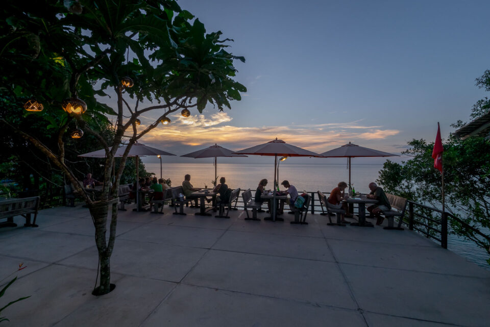 На пляже Klong Chao (обзор всех пляжей Ко-Куд), слева на холме есть кафешка с хорошим видом. Так и называется Good view cafe. Здесь хорошо встретить закат и выпить коктейль.