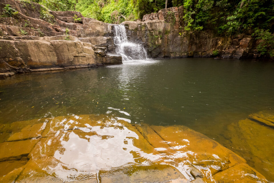Водопад Клон Яи Ки (Khlong Yai Kee) остров Ко-Куд Досуг Этот маленький но уютный водопад находится в северной части острова. В основании водопада находится большая чаша где можно поплавать и охладиться от жары. Воды в феврале не очень много В ноябре больше