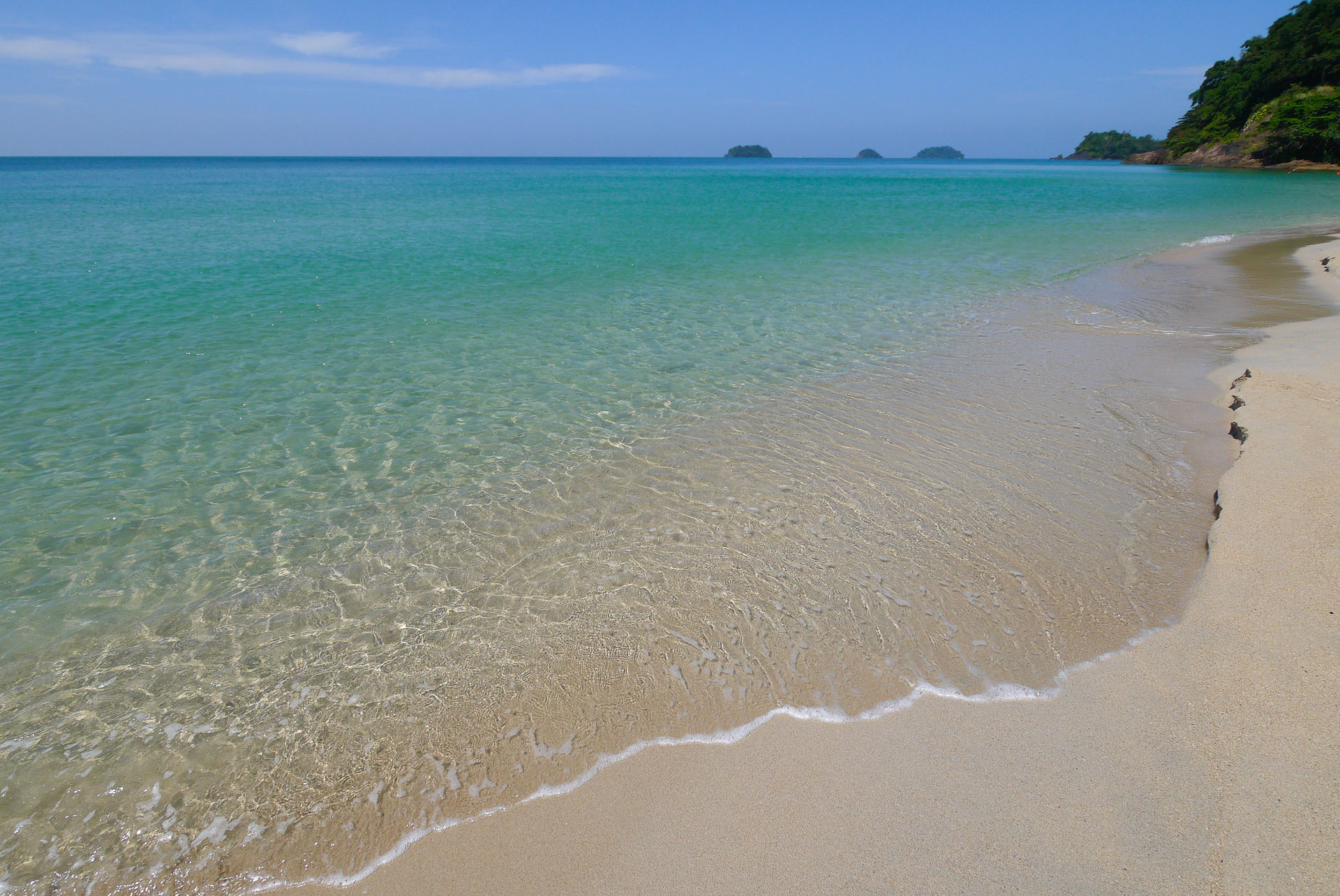 Чуть подальше на юг острова, пляж становится каменистым. Здесь расположены отели и кафешки.