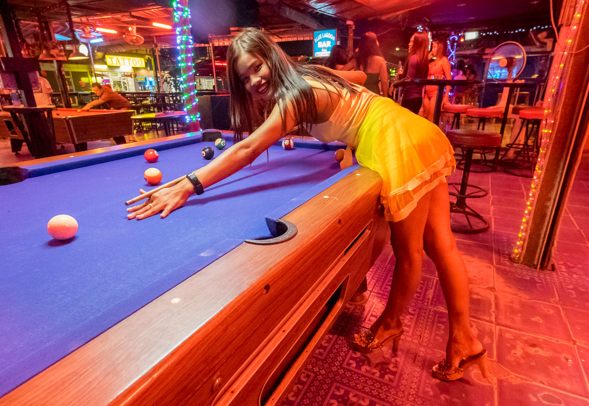 Квартал красных фонарей на Ко-Чанге это бары с девушками где можно прийти выпить пива, пообщаться, поиграть в бильярд и взять понравившуюся девушку к себе в номер. Таких баров по западному побережью острова довольно много. Но есть два основных центра это бары на пляжах Вайт Сэнд и Кай Бэй.