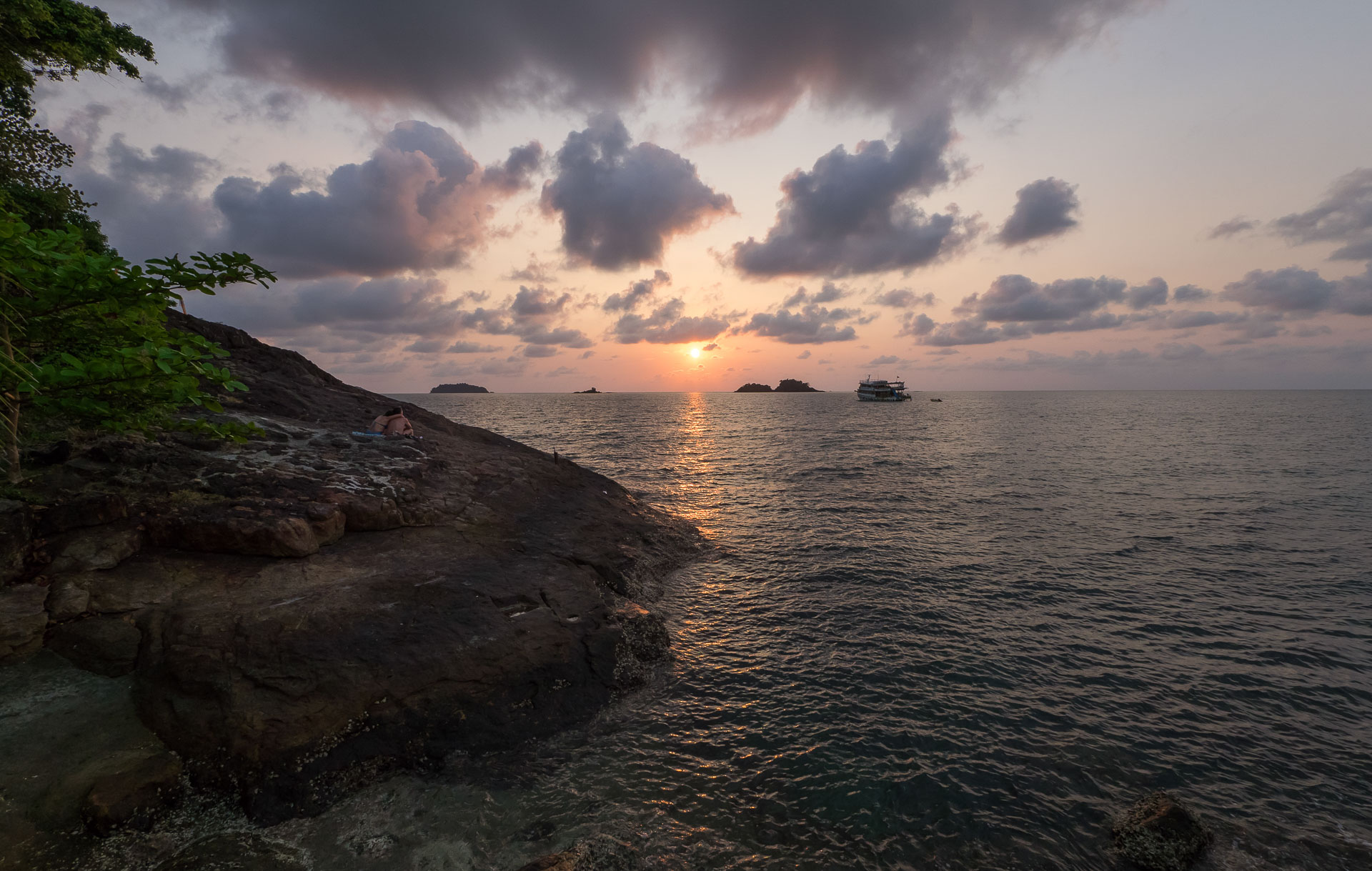 Скалы рядом с отелем Чок Ди Резорт — хорошее место встретить закат Общее Вечером здесь очень приятно полежать на теплых скалах и насладится закатом. А днем здесь же можно арендовать каяк и поплавать вдоль берега