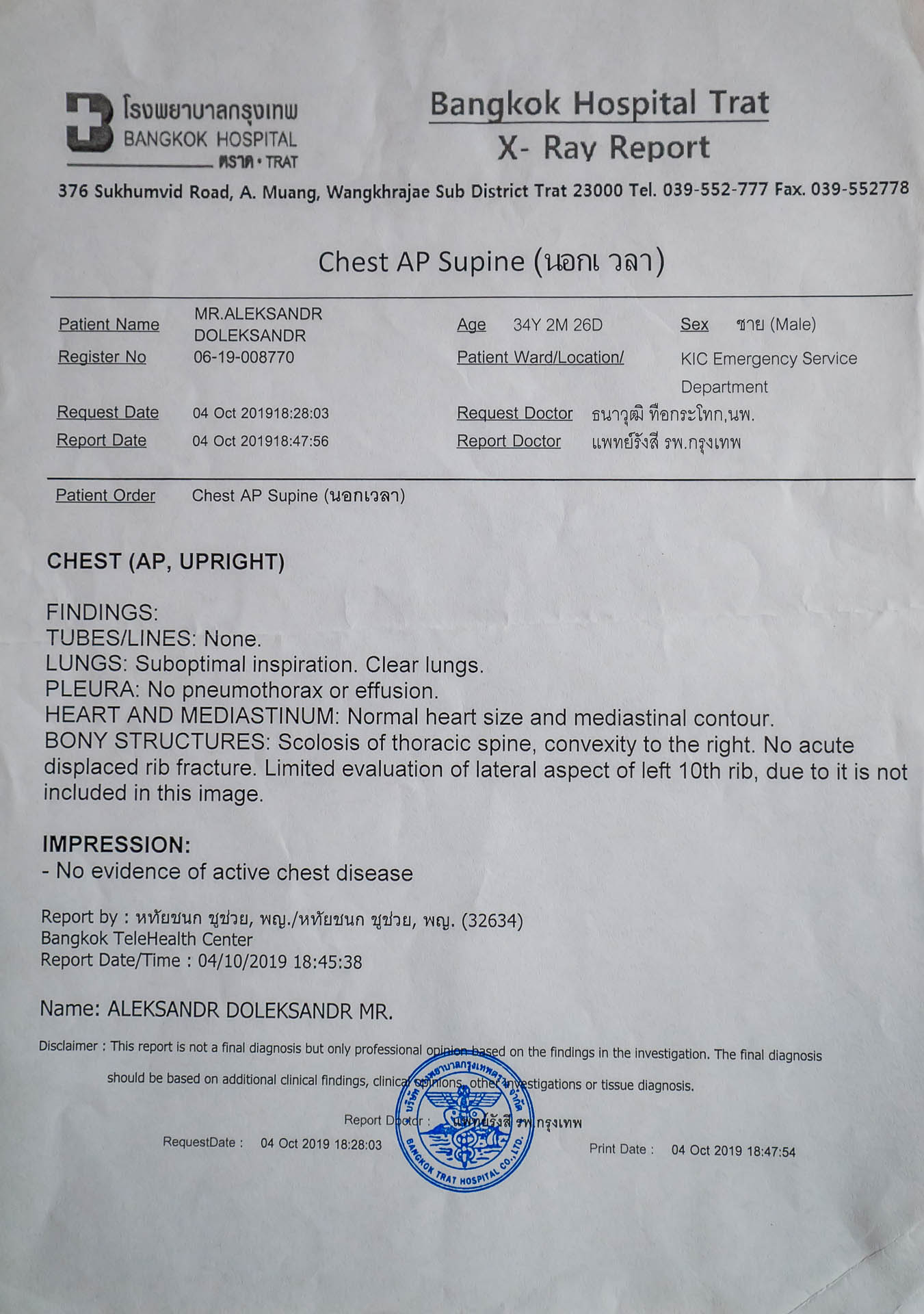 Расскажу на своем примере. После того как я упал с мотобайка, я обратился в эту самую международную клинику. У меня не было страховки. Но было подозрение что сломано ребро. Мне было важно сделать рентген. В результате все обошлось и ничего кроме легкого сколиоза не нашли.