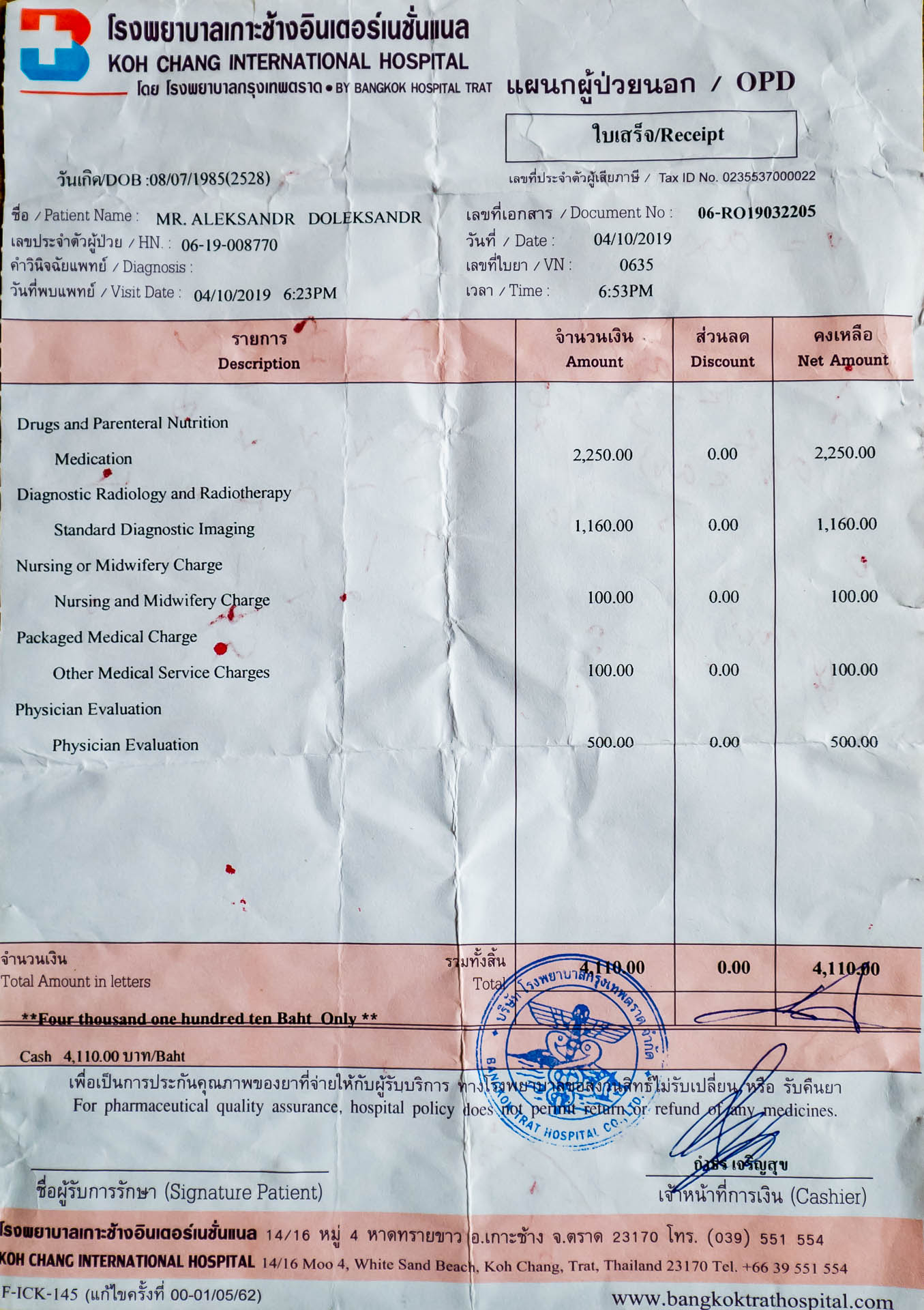 Обратиться в эту клинику не имея страховки довольно накладно. Т.к. за один только осмотр доктором придется заплатить 4000 бат. Да, это туристический остров. За аналогичный осмотр в международной клинике на материке возьмут 400 бат.