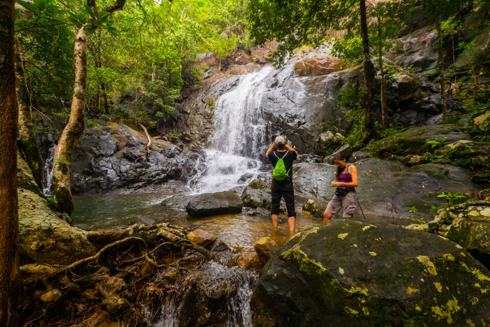 На территории приватного пляжа и отеля Boat Chalet есть и водопад известный как Прао Талай находится от прямо за шлагбаумом налево. Минут пять через лес и выходим к водопаду: